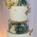 White And Golden Heart Shape Cake
